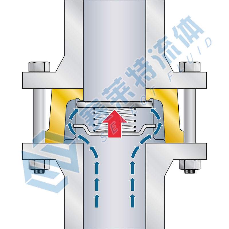 阀瓣带有不锈钢弹簧装置,阀门横竖均可安装;