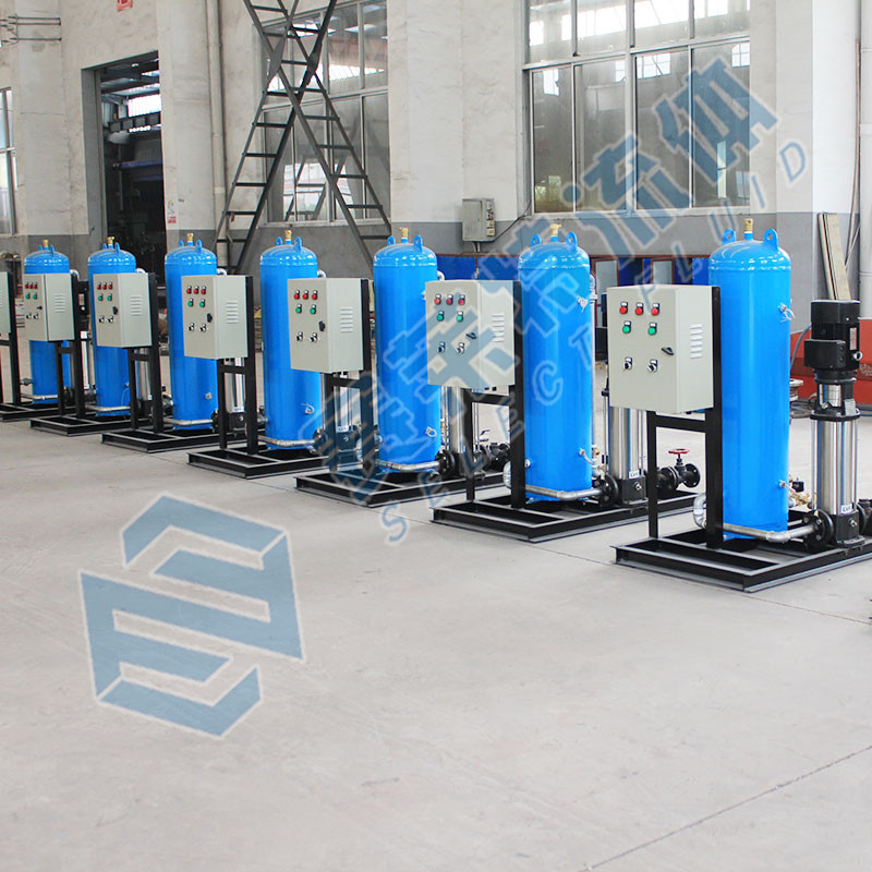 根据亨利定律,气体在水中的溶解度与水温和压力相关,在一定温度下,与气体的压力成正比。在一定的压力下,与水温成反比。当降低水面的压力,则可在较低水温下,使水中的气体析出,从而除去水中的气体。真空脱气(脱氧)机就是通过在机器中产生的真空,将水中的游离气和溶解气释放出来,再通过自动排气阀排除系统,脱气后的水再注入系统。真空脱气机每20~30秒钟重复一次这样的循环。如此循环往复,最终将系统水中的所有气体脱除。